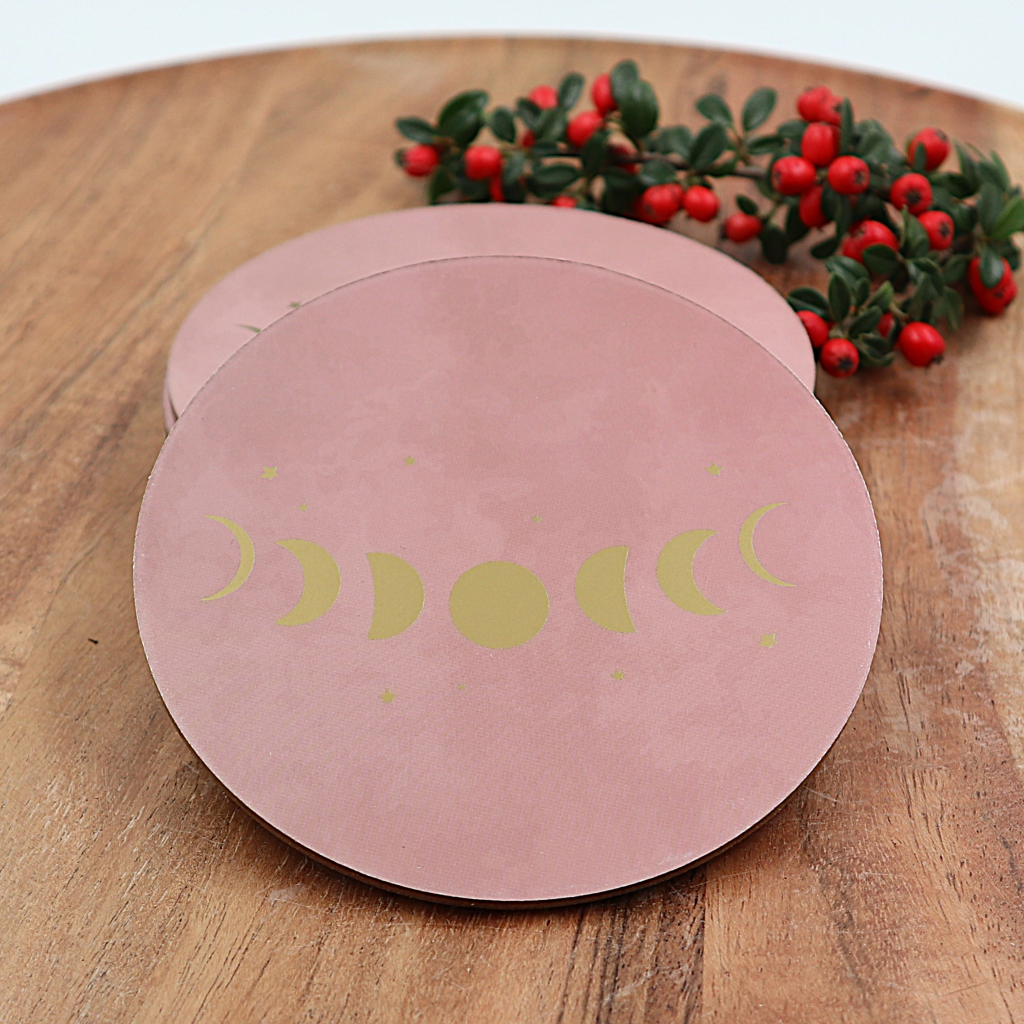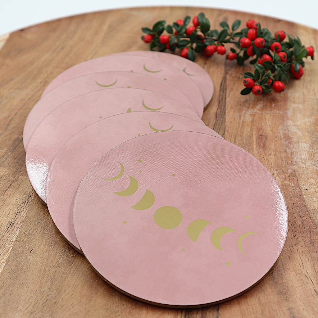 Set van 6 onderzetters met Maanfasen afbeelding.