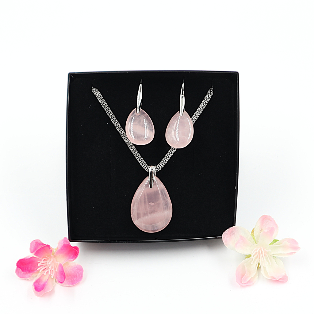 Echte edelsteen oorbelhangers en bijpassende edelsteen hanger aan 45cm slangenketting in mooie verpakking.