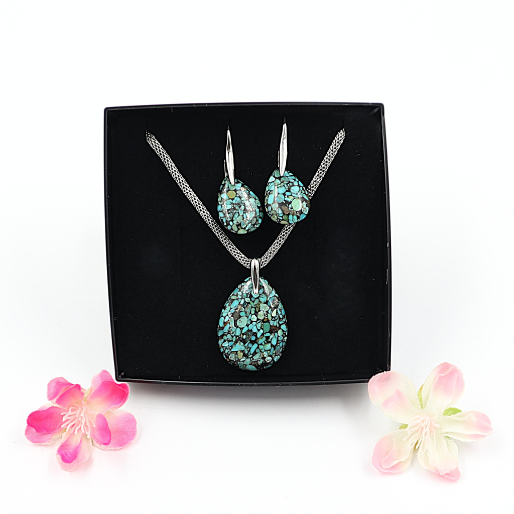 Echte edelsteen oorbelhangers en bijpassende edelsteen hanger aan 45cm slangenketting in mooie verpakking.