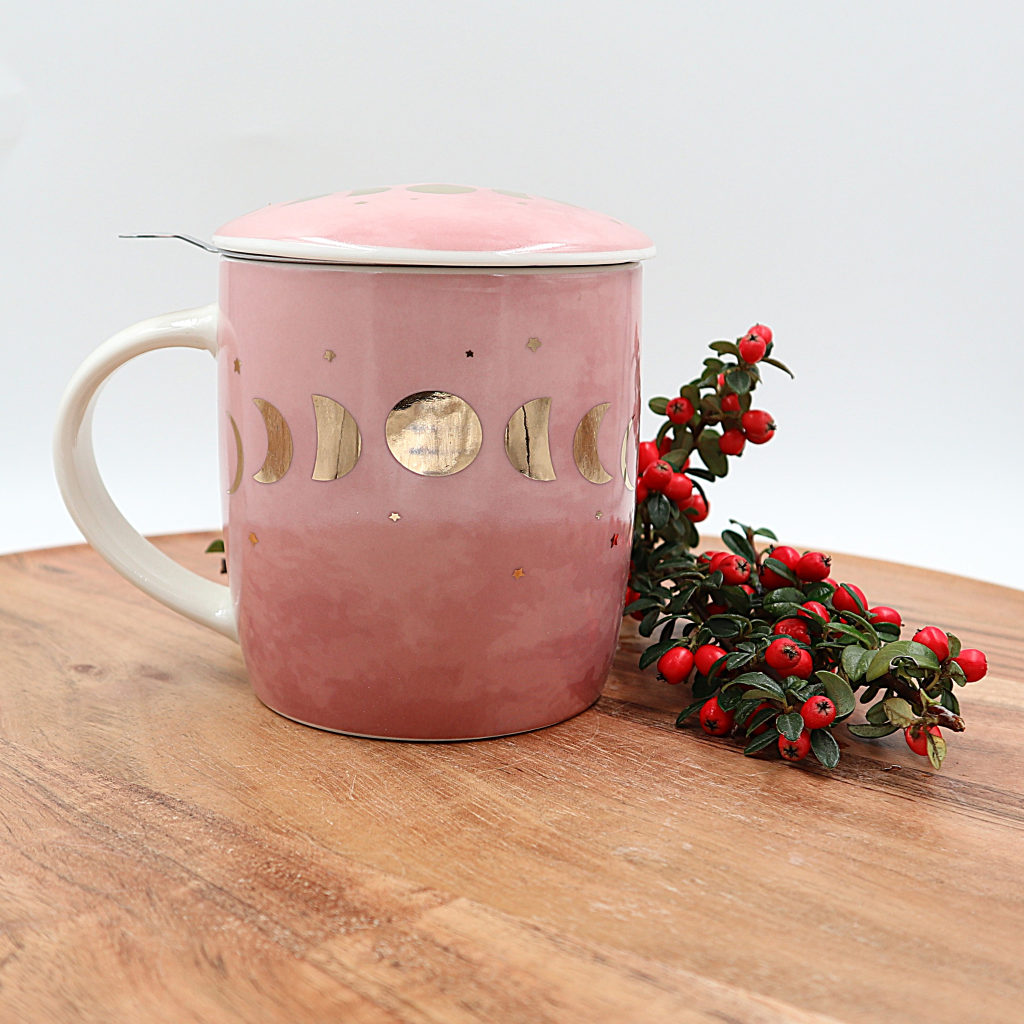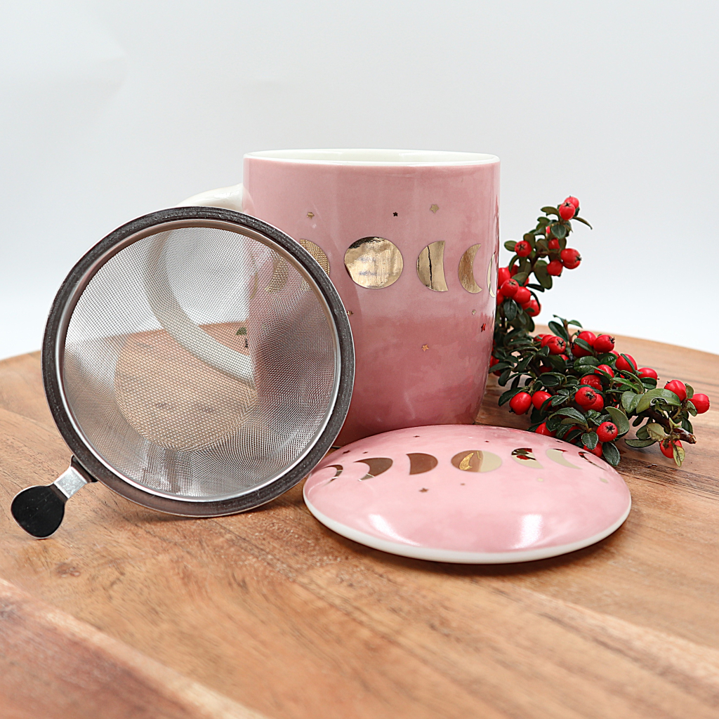 Maanfasen theemok met bijpassend deksel en roestvrijstalen zeef.