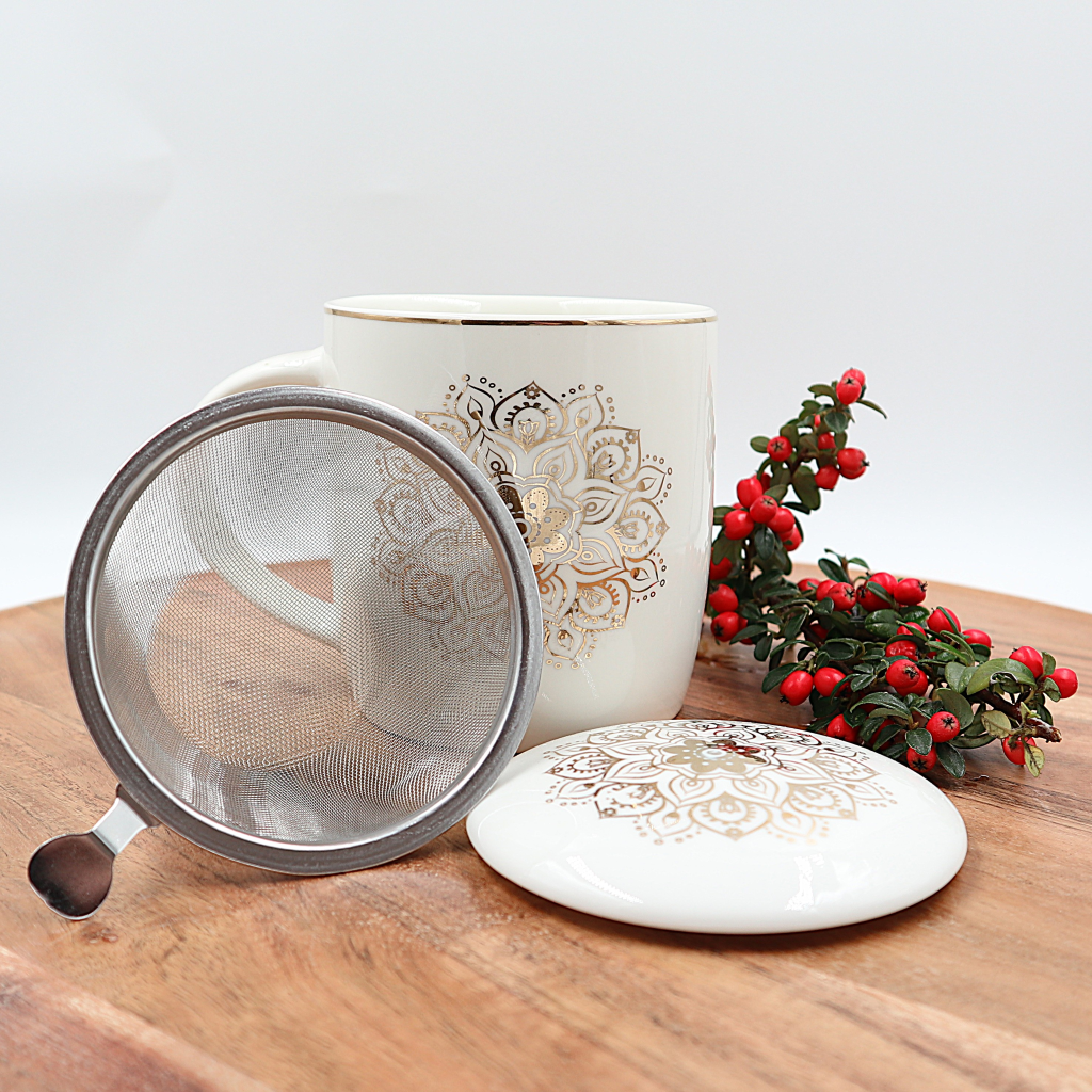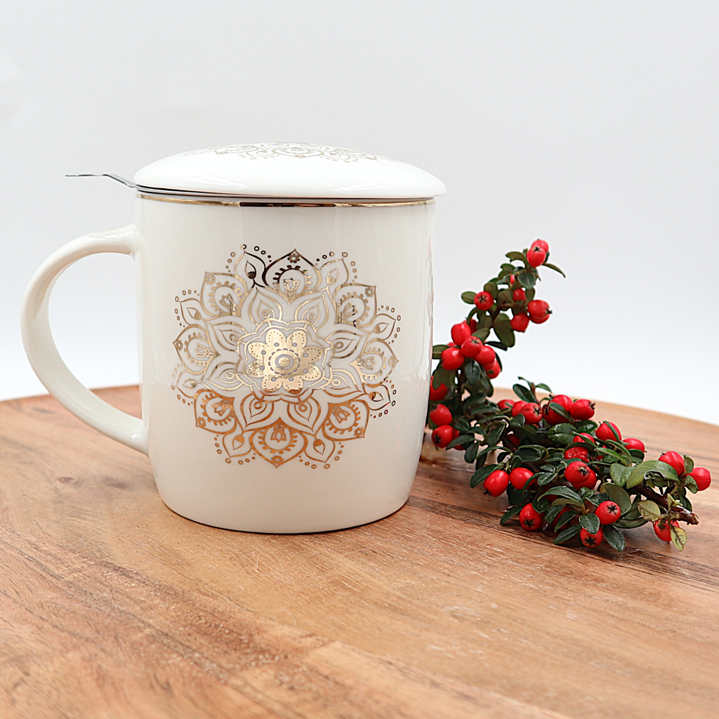 Mandala theemok met bijpassend deksel en roestvrijstalen theezeef.