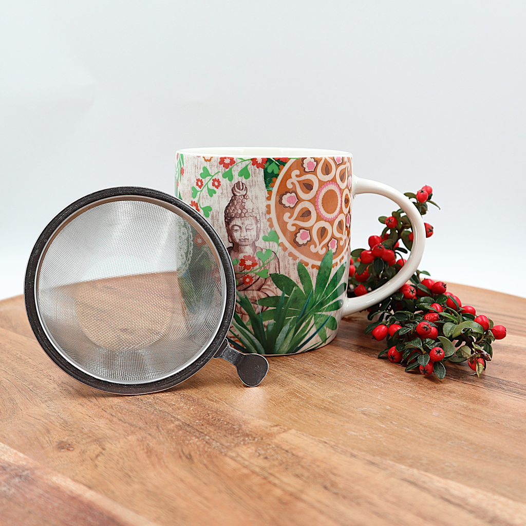 Boeddha paradijs theemok met roestvrijstalen theezeef.