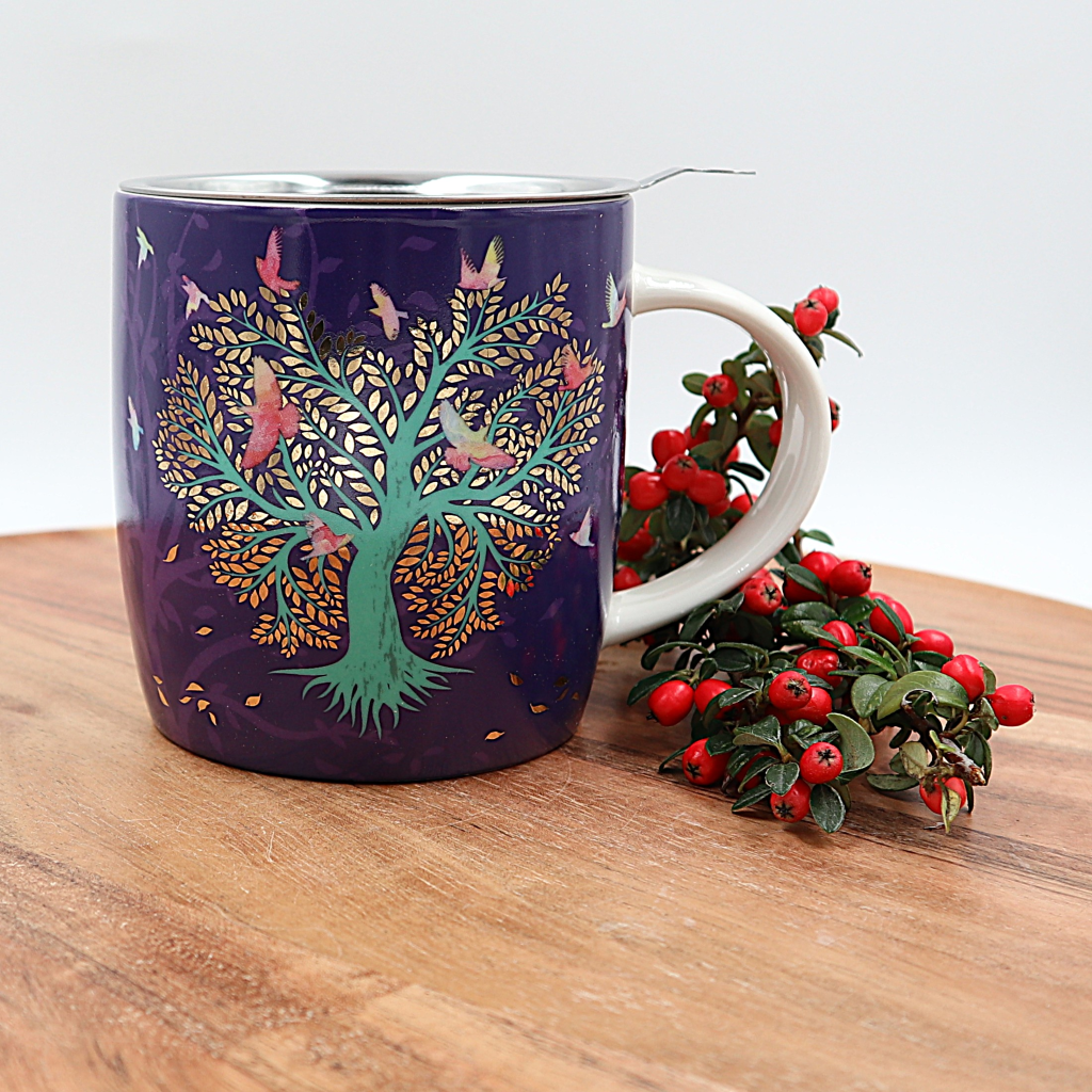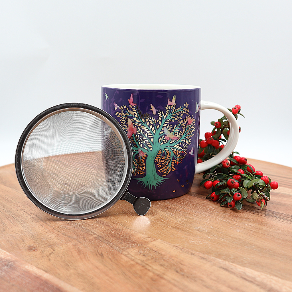 Lovebirds theemok met roestvrijstalen theezeef.