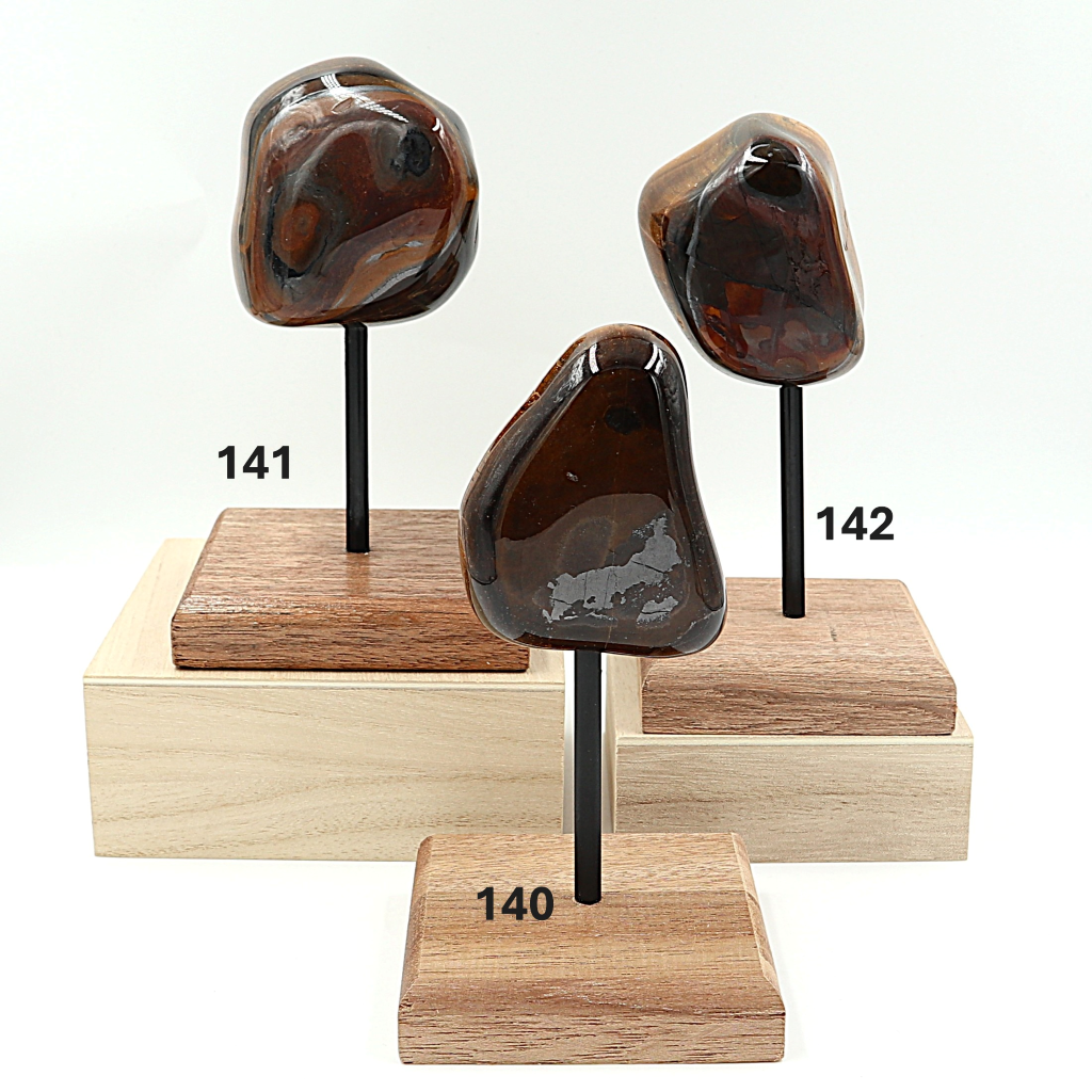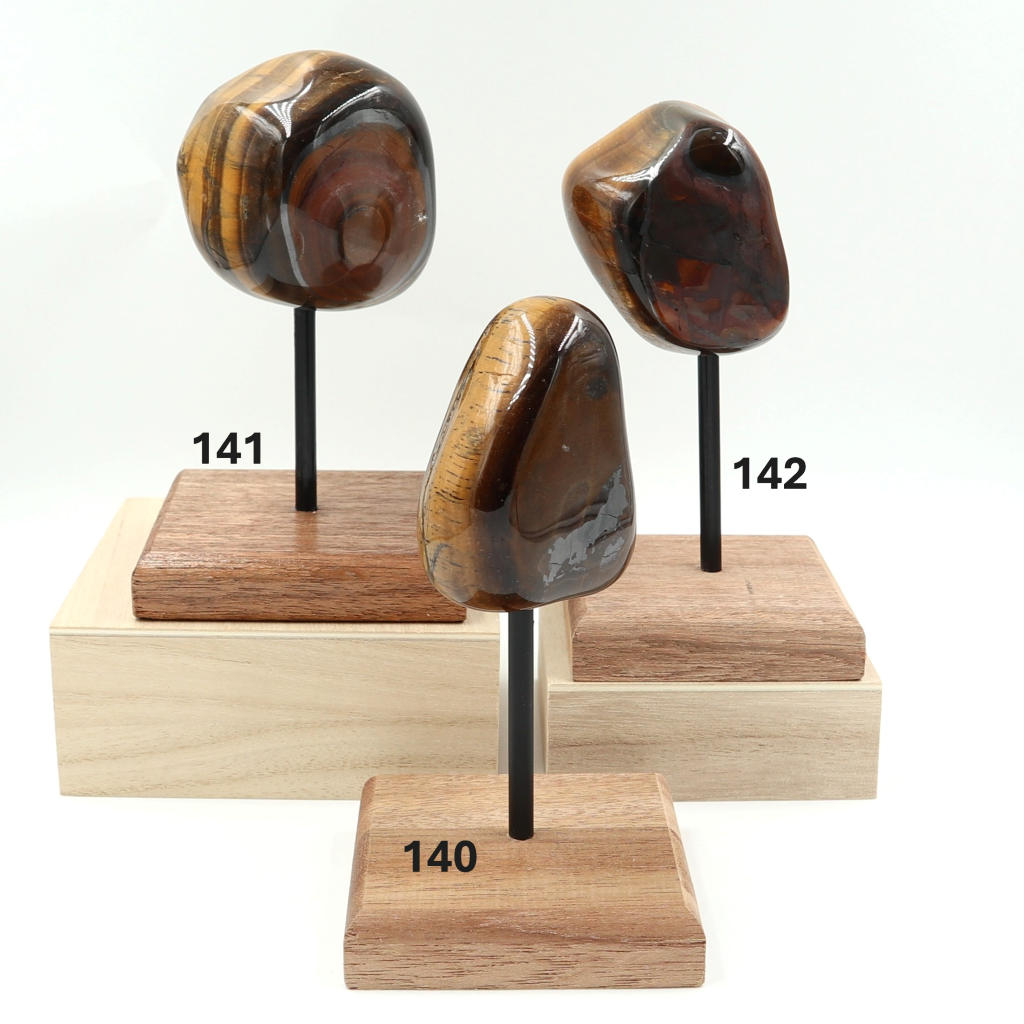We hebben de mooiste Tijgerogen uitgezocht, ingeboord en ze geplaats op Merantie houten blokje ( FSC ). Deze zijn onbehandeld en verschillen ook van kleur. De edelstenen zijn niet vastgelijmd.