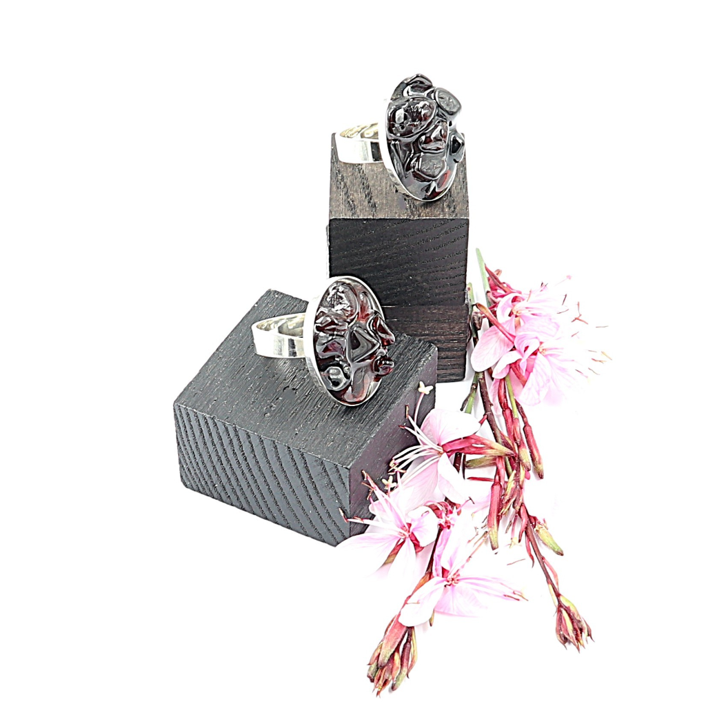 Prachtige zilveren ring bezet met kleine (donker rode) Granaat edelsteentjes.